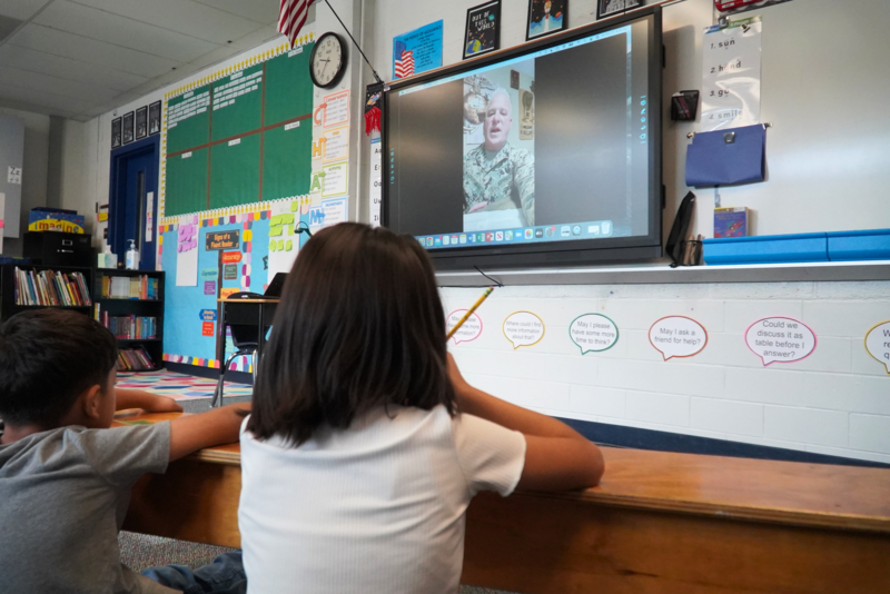 Students in Aaron Gneiding’s third grade dual language class learned about what it means to be a veteran from those who know about service and sacrifice.